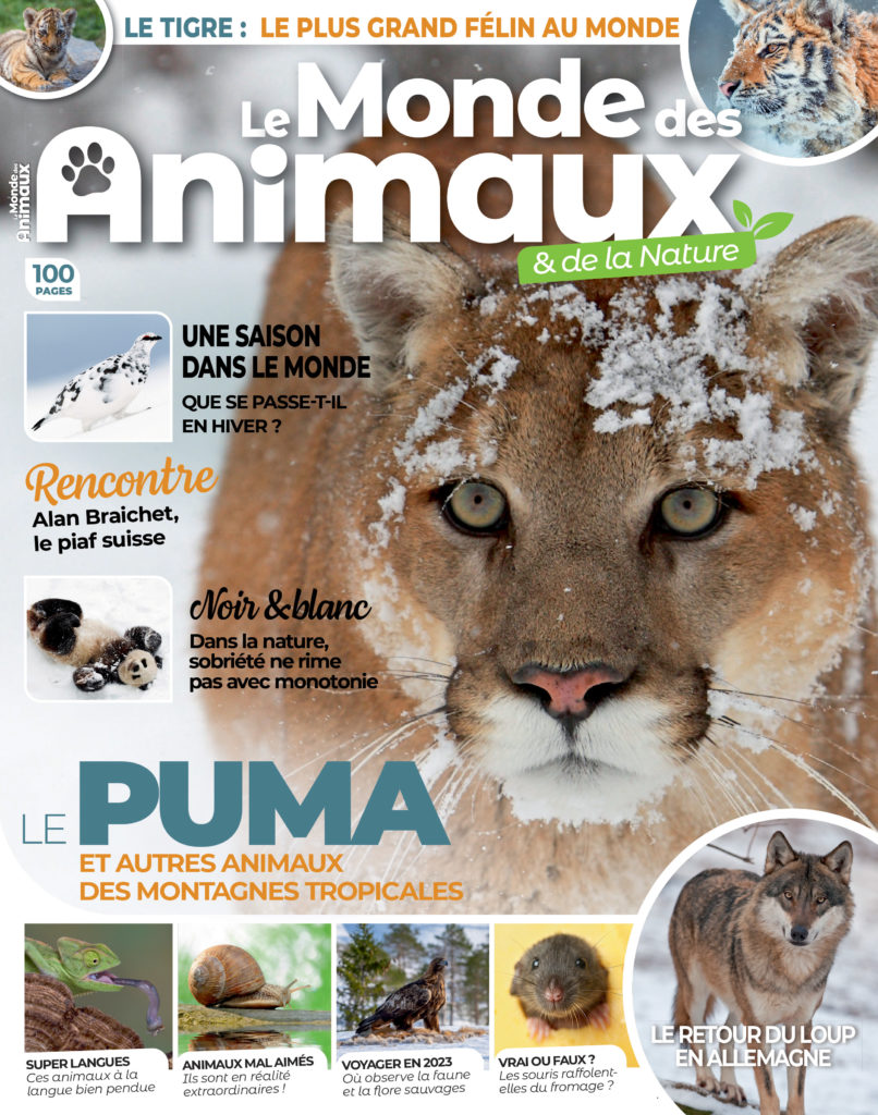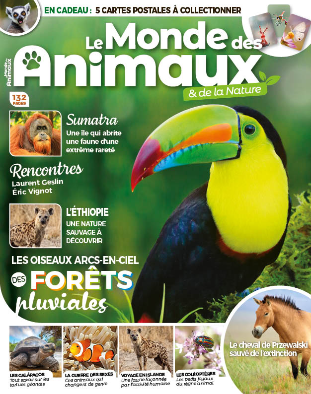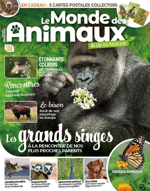 Magazine Numéros courants Le Monde des Animaux n°50 Le Monde des Animaux n°49 Le Monde des Animaux n°48 Le Monde des Animaux n°47 Le Monde des Animaux n°46 Le Monde des Animaux n°45 Le Monde des Animaux n°44 Le Monde des Animaux n°43 Le Monde des Animaux n°42 Le Monde des Animaux n°41 Le Monde des Animaux n°40 Le Monde des Animaux n°39 Le Monde des Animaux n°38 Le Monde des Animaux n°37 Le Monde des Animaux n°36 Le Monde des Animaux n°35 Le Monde des Animaux n°34 Le Monde des Animaux n°33 Le Monde des Animaux n°32 Le Monde des Animaux n°31 Le Monde des Animaux n°30 Le Monde des Animaux n°29 Le Monde des Animaux n°28 Le Monde des Animaux n°27 Le Monde des Animaux n°26 Le Monde des Animaux n°25 Numéros spéciaux Félins du monde – hors-série n°39 Les prouesses et records des animaux – hors-série n°37 Les secrets du monde sauvage – hors-série n°36 Créatures marines – hors-série n°35 Les chiens de race – hors-série n°34 Les animaux prédateurs – hors-série n°33 Le bien-être de nos animaux – hors-série n°32 SOS animaux en détresse – hors-série n°31 Les animaux de l’extrême – hors-série n°30 Les animaux de compagnie – hors-série n°29 Le grand guide des animaux surprenants – hors-série n°28 110 idées reçues sur les animaux – hors-série n°27 Les animaux d’Afrique – hors-série n°26 Les oiseaux – hors-série n°25 Les bébés animaux – hors-série n°24 Les animaux du froid – hors-série n°23
